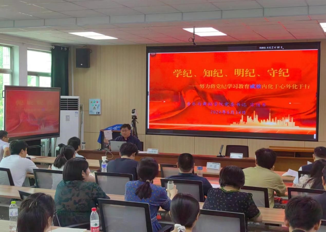 会议传达学习了关延平书记在 情趣 警示教育会上的讲话精神,观看了警示教育片《永远吹冲锋号》第3集《铁规矩 硬杠杠》。蘧广震就《高校党员干部违纪典型案例》中的六种违规案例逐一作了剖析讲解。院党委书记宗传军讲授了纪律党课《学纪、知纪、明纪、守纪——努力将党纪学习教育成效内化于心外化于行》。宗传军指出,要切实提高政治站位,深刻领悟党纪学习重大意义;要精准把握主旨要义,切实将《条例》规定内化为日常准则;要全面落实党纪要求,推动学院全面从严治党向纵深发展。他强调,每个人言行都是一面镜子,代表着“岗位职责人”,要做正确的事和正确地做事。全体党员、干部一定要强化学习,让纪律入脑入心;一定要自警自省,让纪律走深走实;一定要知行合一,让纪律见行见效。