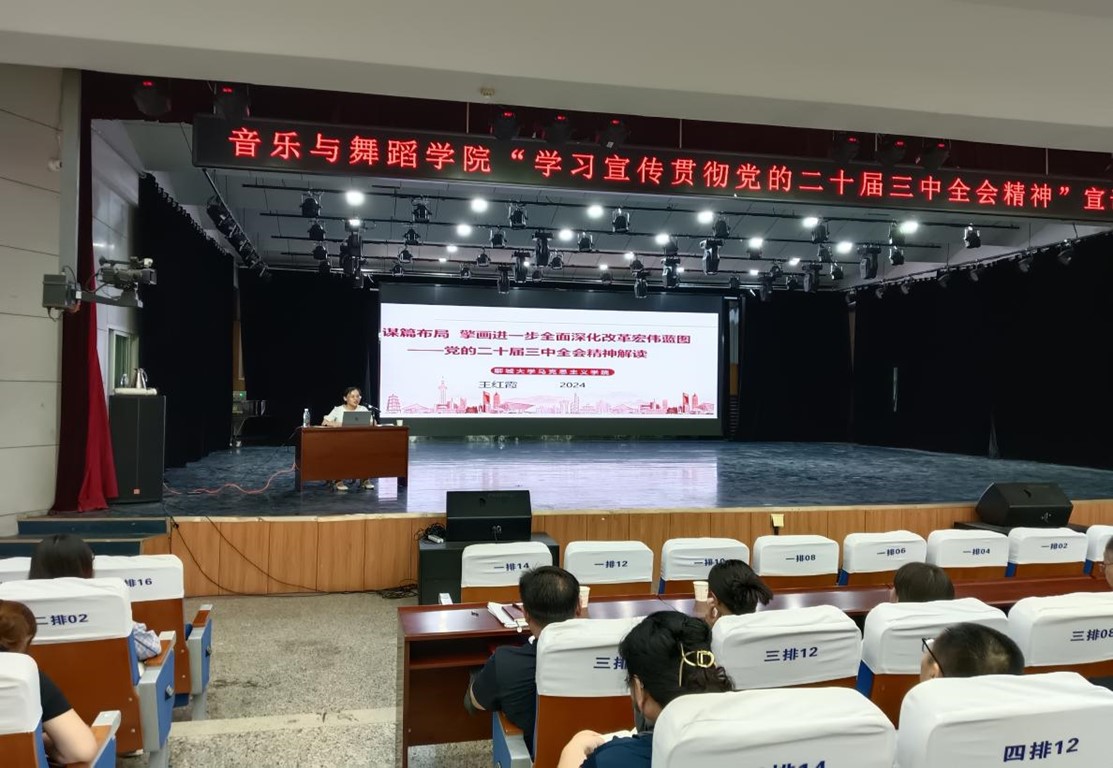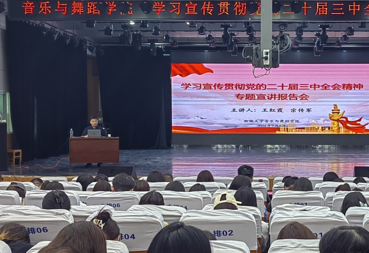 为深入学习贯彻党的二十届三中全会精神,根据学校党委统一部署和相关通知精神,9月5日下午, 情趣 在9号教学楼音乐厅举办“学习宣传贯彻党的二十届三中全会精神”专题宣讲报告会,校宣讲团成员、马克思主义学院教授王红霞,院党委书记宗传军先后为大家作宣讲报告。学院全体教工、学生党员、入党积极分子及学生骨干代表参加。