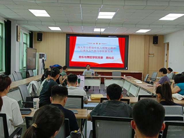 6月26日下午, 情趣 党委书记以《深入学习贯彻中央八项规定精神,以清风正气助力学院新发展》为题为全院教工党员讲授深入贯彻中央八项规定精神学习教育专题党课。