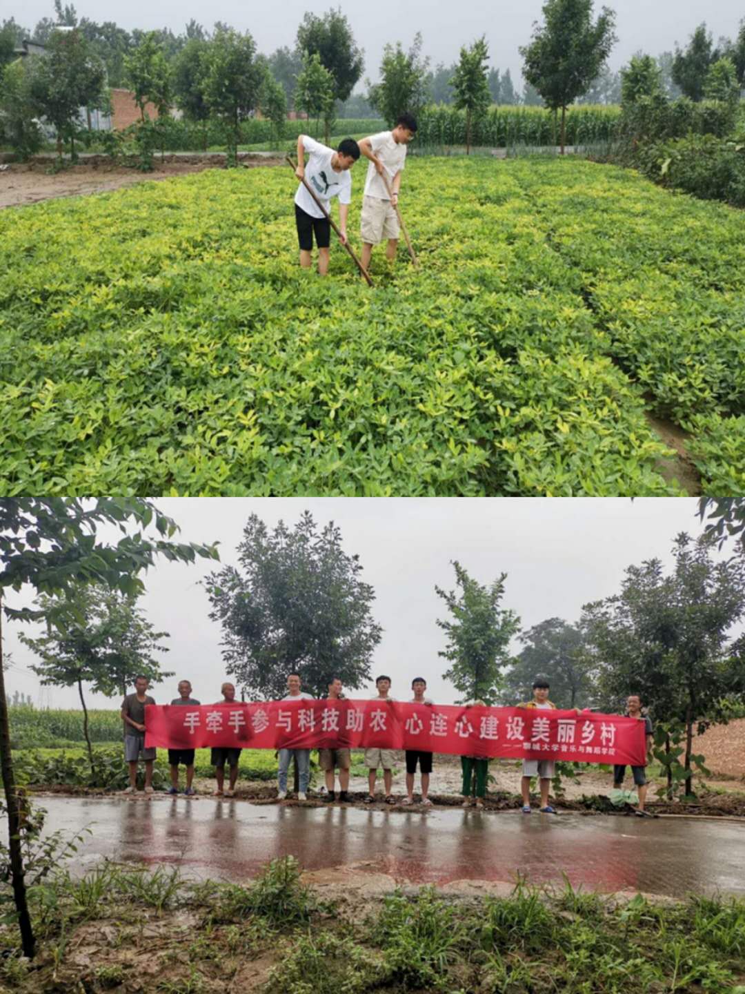 天光熹微,志愿者们头顶霏霏细雨踏上了通往农田的小路。伴随村民手把手的教导,大家手持农具一股脑扎进了“绿色海洋”。除杂草、上肥药,志愿者们的衣服和鞋都已经湿透,手上也隐约磨出了水泡。“刮风下雨也得干!粮食就是这样种出来的。”村长大叔一脸泥土和雨水,坚定而豁达的说。一天的耕作体验让志愿者们感受良多,深刻体验到粒粒粮食皆来之不易。
