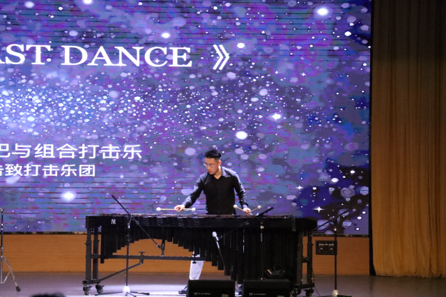 本场音乐会曲目丰富多元,兼具中西风情与古今意韵,为观众奉上了一场层次饱满的艺术盛宴。上半场中,打击乐重奏《The Last Dance》,用节奏的律动为这场终极之舞敲响充满张力与诗意的生命节拍;弹拨乐重奏《城里的月光》以清越的音色,勾勒出一幅独属于中国韵味的月夜画卷;竹笛四重奏《梧影婆娑》清韵悠远,恰似月下梧影随风摇曳;萨克斯版《柯南青鸟组曲》融入爵士风韵,让经典旋律焕发出灵动活力;古筝重奏《柳京之舞》以铮铮弦音织就一幅冷冽而锋利的现代都市图景。