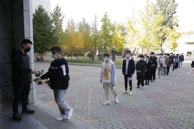 10月22日, 情趣 组织2020级全体新生在9号教学楼开展了疫情防控演练,学生辅导员陈蓝天、石晓晗对演练进行了全程指导和讲解。