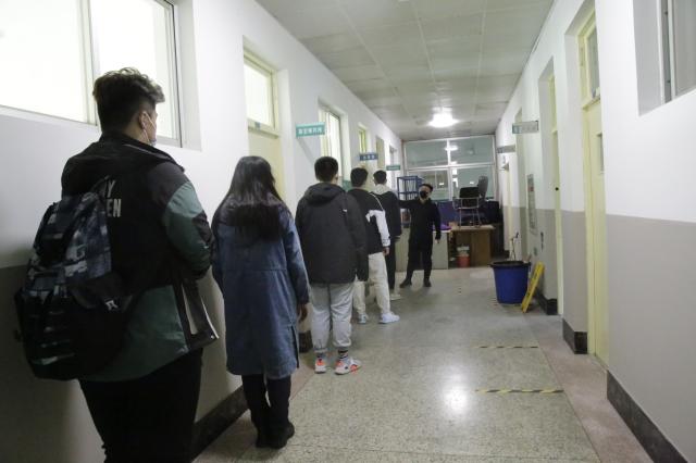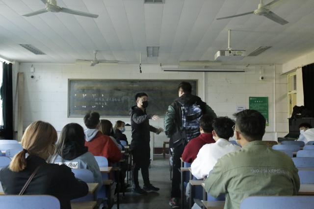 演练过程中,石晓晗首先就国内外疫情发展现状和学院疫情防控总体要求进行了介绍,并对日常防护方式和应急处置流程进行了讲解。随后,全体新生同学分批次先后到教学楼前、309合堂教室、临时留观室观摩了志愿者相关演示,对进入教学区域和上课过程中同学突发不适等情况进行了模拟,陈蓝天对各流程重点环节进行了着重强调,同时还对即将开始的新生统一体检进行了重点安排。
