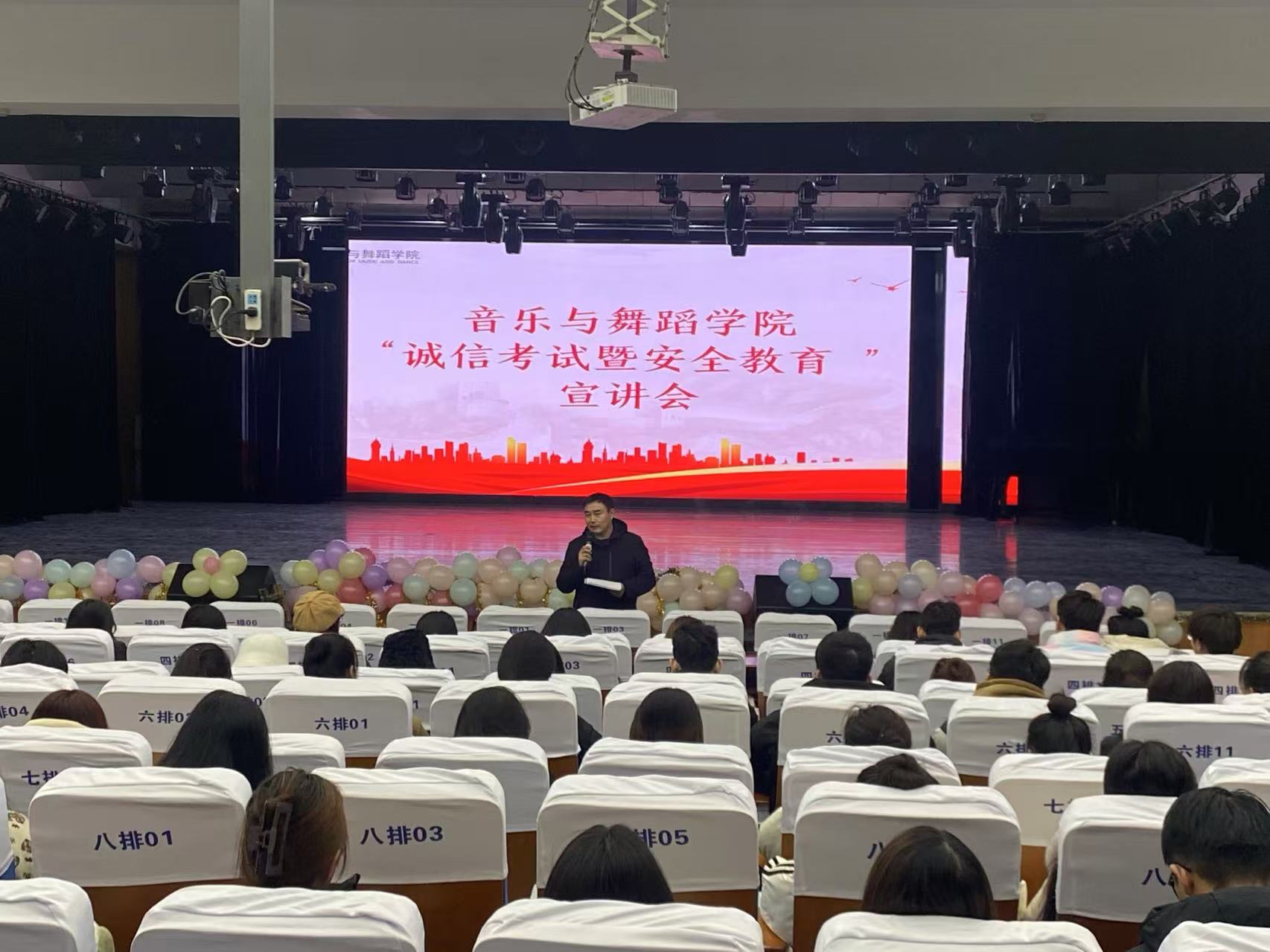 为强化学生们的诚信考试意识,并实际践行诚信考试,12月11日, 情趣 在9#五楼音乐厅举办诚信考试宣讲会,各年级代表积极参与。在宣讲现场, 情趣 党委副书记、副院长蘧广震深入阐释了诚信的重要性,详尽阐述了诚信考试的重要性,并宣读了考试纪律的相关规定,积极引导学生应成为诚信的典范,共同营造学院内良好的诚信氛围。