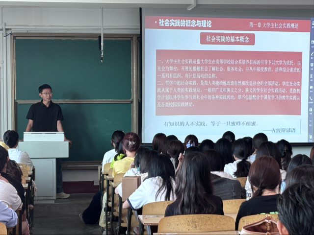 为鼓励同学们积极参加社会实践活动,辅导员王森远详细阐述了社会实践的重要性及参与途径,分享了学院过往社会实践活动的优秀案例,包括深入社区开展文艺演出、到偏远地区进行音乐支教等,让新生们对社会实践的具体形式和可能带来的收获有了更直观的感受。他提到,社会实践不仅是将理论知识应用于实际的有效方式,更是锻炼同学们综合能力、拓宽视野的重要平台。