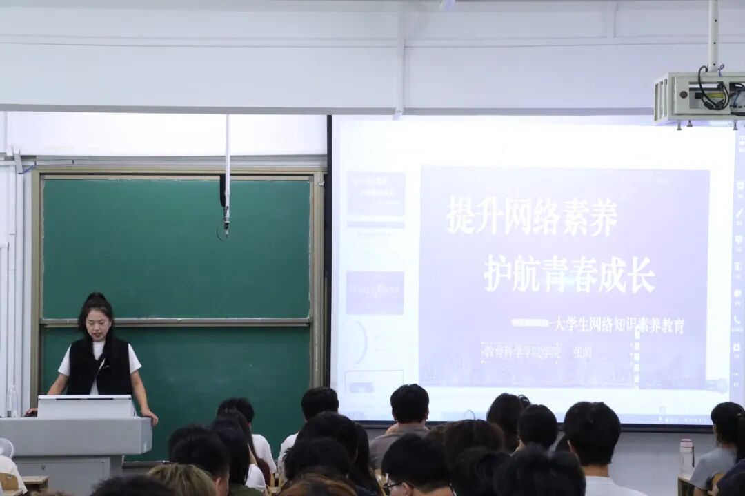 为帮助新生树立正确的法律观念,培育大学生网络法律素养,学院特邀教育科学学院辅导员张萌为同学们做网络素养讲座。张老师从网络的利与弊出发,结合实际案例,深入浅出地讲解了如何正确利用网络资源、如何辨别网络信息的真伪以及如何避免陷入网络诈骗等陷阱。她强调,在信息爆炸的时代,保持清醒的头脑和理性的判断至关重要,希望同学们能够成为网络文明的传播者和践行者。