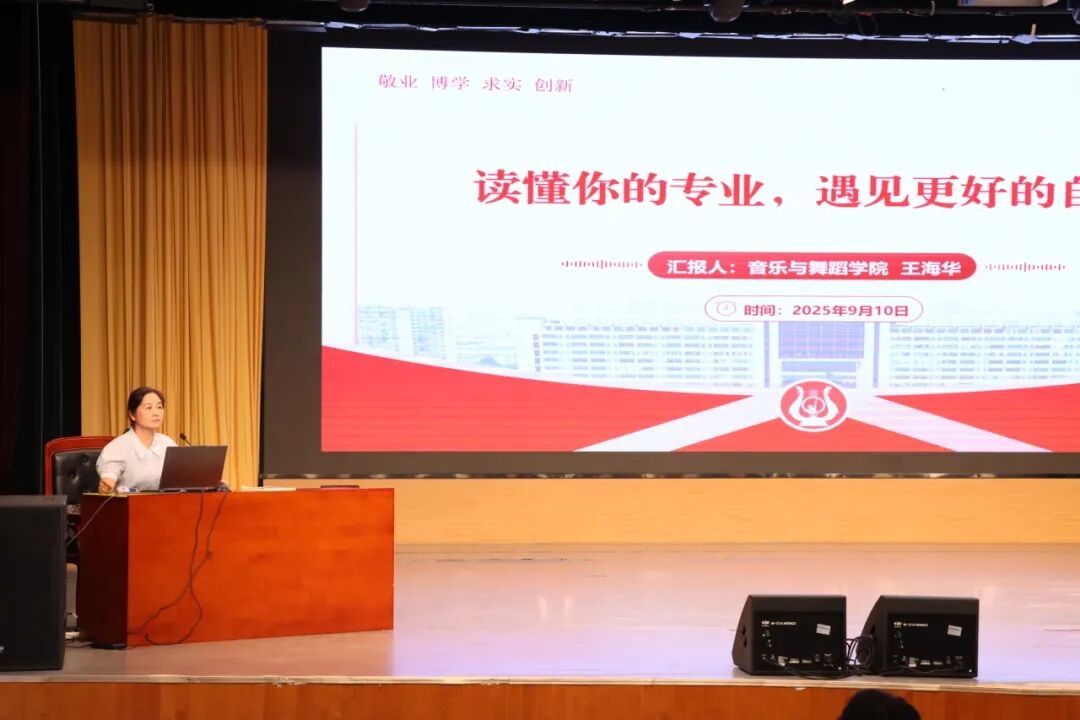 为帮助新生深入了解学科特点与专业发展方向,学院组织开展专业认知教育。副院长王海华系统讲解了音乐与舞蹈专业的培养目标、核心课程设置以及未来就业前景,并结合专业实际案例和学科资源优势,引导同学们增强专业认同、树立学业目标,为大学阶段的系统学习与艺术成长奠定坚实基础。