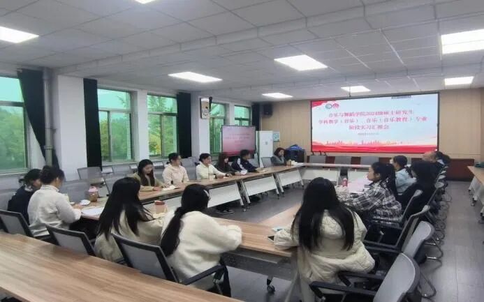 为助力硕士研究生提升专业能力,全面检验教学实践成效,10月11日, 情趣 于205会议室召开2024级学科教学(音乐)、音乐(音乐教育)专业阶段实习汇报会。学院副院长牟艳丽、部分硕士研究生导师、教师代表以及2024级全体相关专业硕士研究生参加本次阶段实习汇报会。