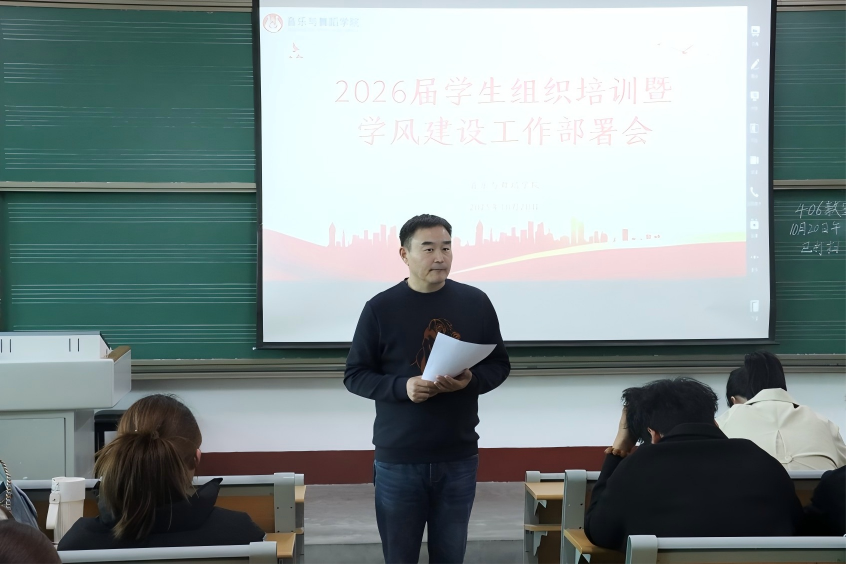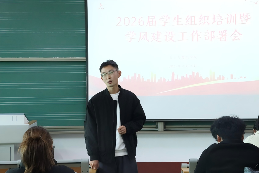 为进一步加强学生干部队伍建设,推动优良学风形成。10月19日, 情趣 于9#201教室召开学生干部培训会暨学风建设工作部署会。学院党委副书记副院长蘧广震、全体辅导员老师及学生骨干代表齐聚一堂,共同为学院学风建设擘画路径、凝聚共识。