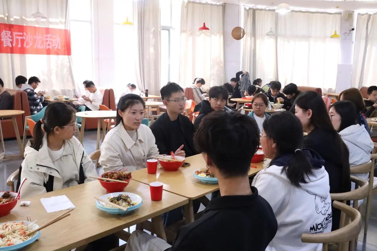 为扎实提升人才培养质量,持续深化学风建设,有效激发学生学习内驱力。11月4日, 情趣 于湖苑餐厅开展“知行‘时’光,共筑学风”餐厅沙龙活动。辅导员田雨、王森远携各班学生代表齐聚一堂,在轻松的用餐氛围中搭建师生交流桥梁。