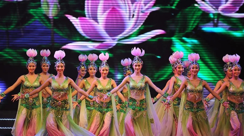改革开放前夕,1953年以陕北民间“荷花灯”为灵感创作的《荷花舞》,其中粉荷象征人民,白荷象征祖国,荷花向太阳寓意人心向着党,是中国向着希望和光明昂首向前的美好愿景。用轻盈的圆场步与灵动的队形变化,抒写人民心向党的美好征程。荣获第四届世界青年与学生和平友谊联欢节银奖,让中国民族舞蹈惊艳国际舞台。