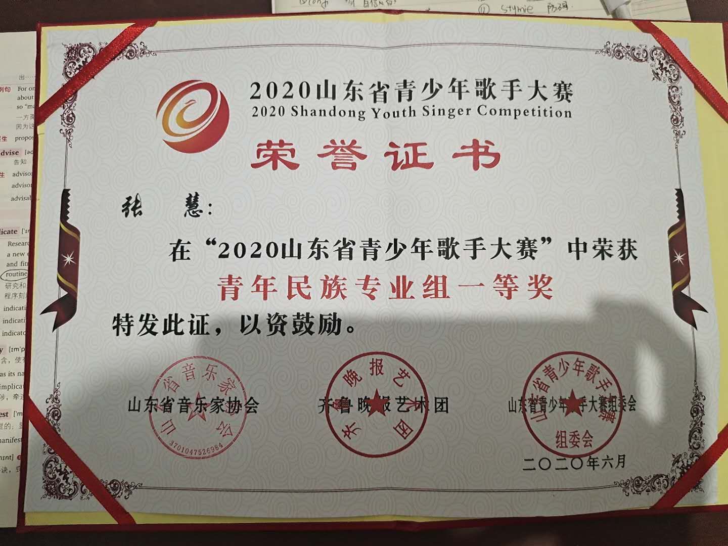喜报! 情趣 在2020山东省青少年歌手大赛获奖