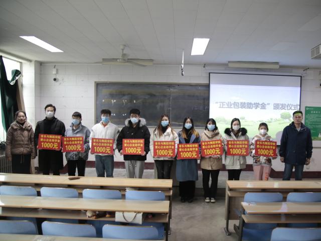 12月11日, 情趣 在学院9号楼201教室举行了第三期“正业包装助学金”发放仪式。学院团委书记梁建新,辅导员张萌,获得正业包装助学金的学生及部分学生代表参加了此次颁发仪式。
