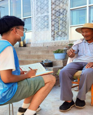 “我参加了抗美援越,我感受过美国的飞机从头顶上飞过,炮弹擦身而过,这种经历我一辈子也忘不了,我当初加入共产党,一直把为党为国家奉献作为自己的处事原则,现在老了感觉自己力不从心了,但是希望看到新一代年轻的孩子们能继续把这种精神继承下来,为了党的繁荣、国家的兴盛去奋斗。新时代是奋斗者的时代,幸福都是奋斗出来的。接班人要明白艰苦奋斗才是光荣,传统不丢、共产党人的革命本色不变。” 老人这辈子最大的愿望就是去天安门看一眼毛主席。这是调研队成员吴凯萌采访共产党老人的记录。采访后调研队的成员感叹着中国共产党的伟大,共产党是共产党人一辈子的信念,党带给我们的是无穷大的凝聚力。