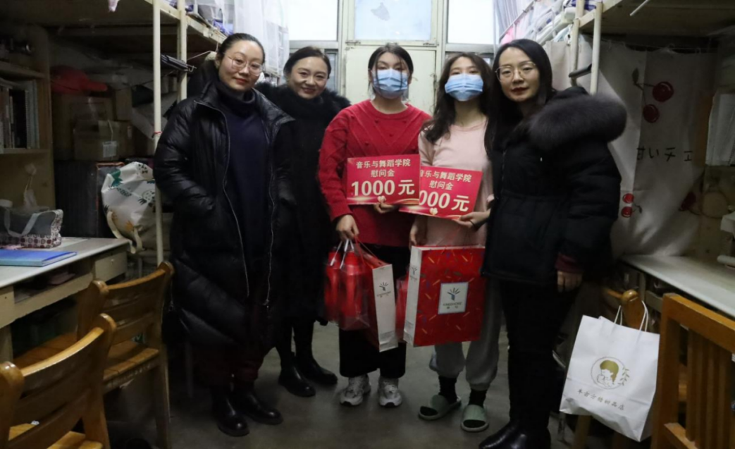 2022年 1月6日到7日, 情趣 党委副书记、副院长张进军 情趣 团委书记梁建新,辅导员张萌、石晓晗、陈蓝天,班主任李雯、朱歌等走进学生宿舍,送去慰问金和慰问品。