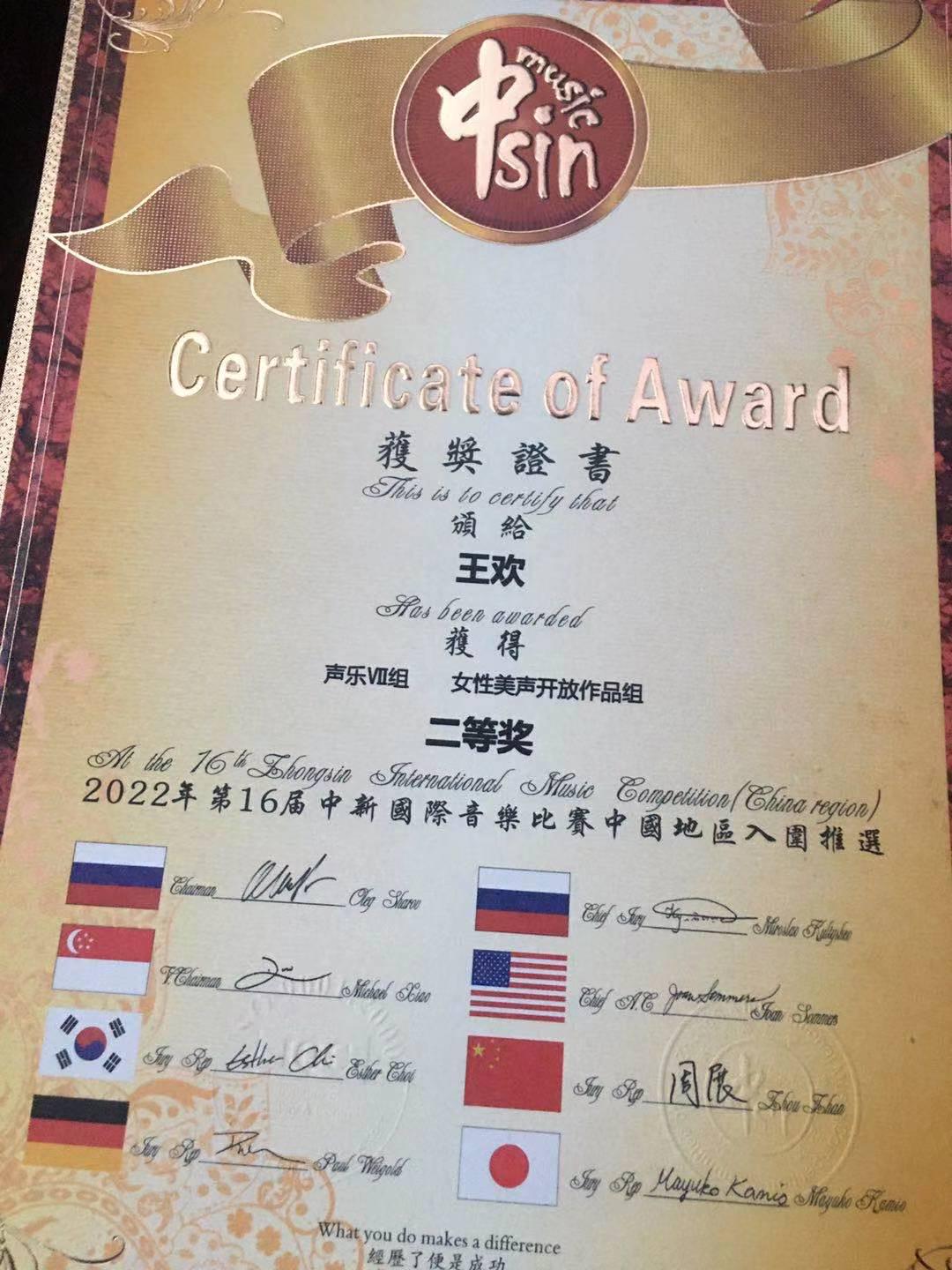 情趣 王欢在”2022第十六届中新国际比赛“中荣获二等奖