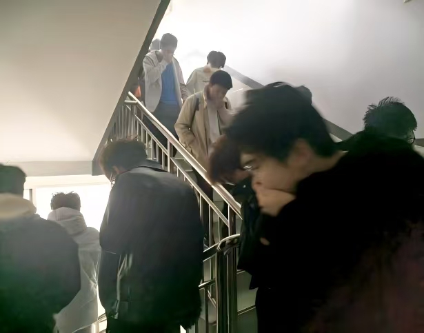 随着模拟火灾警报信号急促响起,演练正式拉开帷幕。各宿舍长迅速响应,组织本宿舍同学进入紧急疏散状态。同学们严格遵循消防逃生规范,以湿毛巾、衣物紧密捂住口鼻,保持弯腰低姿姿态,沿着预定安全路线快速有序撤离。疏散过程中,全体学生沉着冷静、听从指挥,无拥挤推搡等情况发生;宿管人员与学生志愿者在楼梯转角、楼栋出口等关键点位全程值守引导,确保疏散通道畅通无阻,保障全员安全撤离。