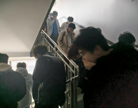 随着模拟火情警报在琴房楼内急促响起,各楼层负责教师迅速反应,组织练琴师生进行紧急疏散。参与演练的师生们沉着冷静,用袖口、湿毛巾等捂住口鼻,低姿弯腰,沿着指定疏散通道,快速、有序地向楼外安全地带撤离。整个疏散过程紧张而不慌乱,在预定时间内,全体参演师生均安全抵达指定集结地点。