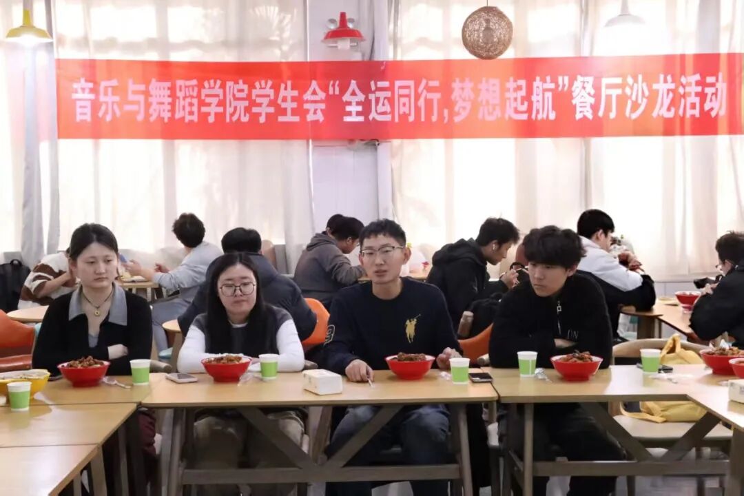 为传承全运拼搏精神、弘扬永不言弃的体育风尚。11月28日, 情趣 于湖苑餐厅一楼举办“全运同行,梦想起航”餐厅沙龙活动,辅导员王森远与各班文体委员齐聚一堂,在轻松融洽的氛围中传递体育力量,让全运精神浸润青春心灵。