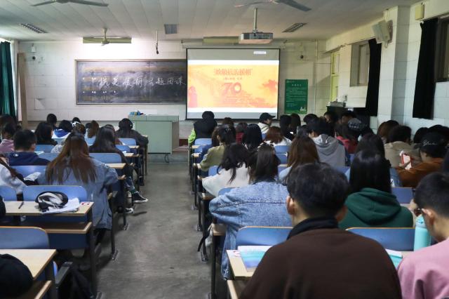 为纪念抗美援朝胜利七十周年, 情趣 于10月25日晚组织学生观看了由共青团中央录制的“致敬抗美援朝”主题云团课、队课。