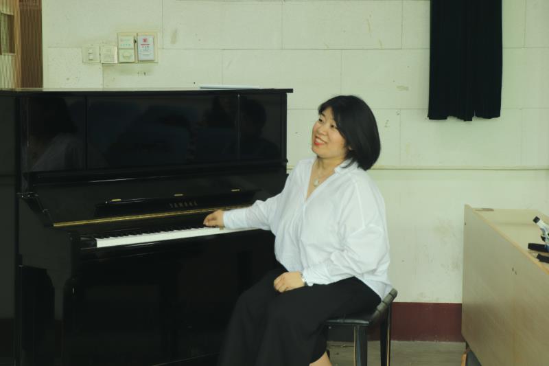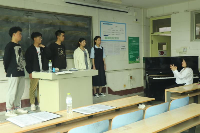 声乐公开课分为发声技巧和歌曲演唱训练两个环节。王明春从发声、音准、节奏以及音乐综合能力等方面对学生进行发声技巧训练。她强调学生要提前预习,加强基本功,才能更好的理解和表现作品的意境。在演唱训练环节,学生演唱了自己的跳级考试作品,王明春对学生进行了全方位的指导和点评,她告诉学生在演唱过程中要注重挖掘音乐作品中的音乐性,关注音乐与动作、韵律的关系,要关注自己的感受与体验,表现与创作。20级学生王玺栋说:“王老师和蔼可亲,上课形式多种多样,既有趣又能提高自己的专业水平。”