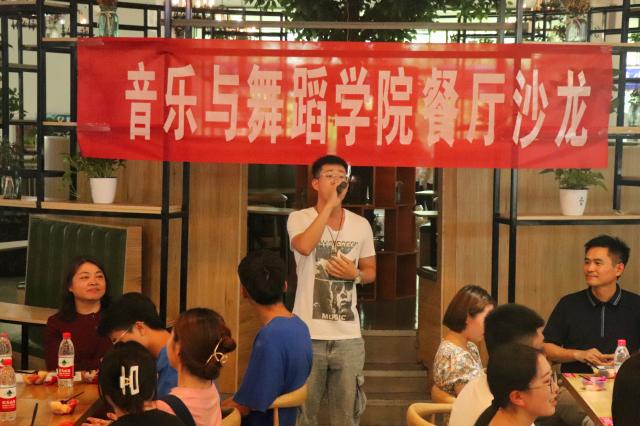 为增进师生感情,给毕业生留下美好的母校印象,6月21日, 情趣 举办的“毕业不散场,感恩再起航”毕业季餐厅沙龙活动,在楠苑二楼顺利开展。出席本次活动的领导老师有:校团委书记、 情趣 党总支书记宗传军, 情趣 党总支副书记、副院长张进军,院团委书记、17级班主任代表梁建新, 情趣 副院长何丽丽、牟艳丽, 情趣 科研书,研究生班主任潘佩佩,2018、2019级辅导员张萌、石晓晗。