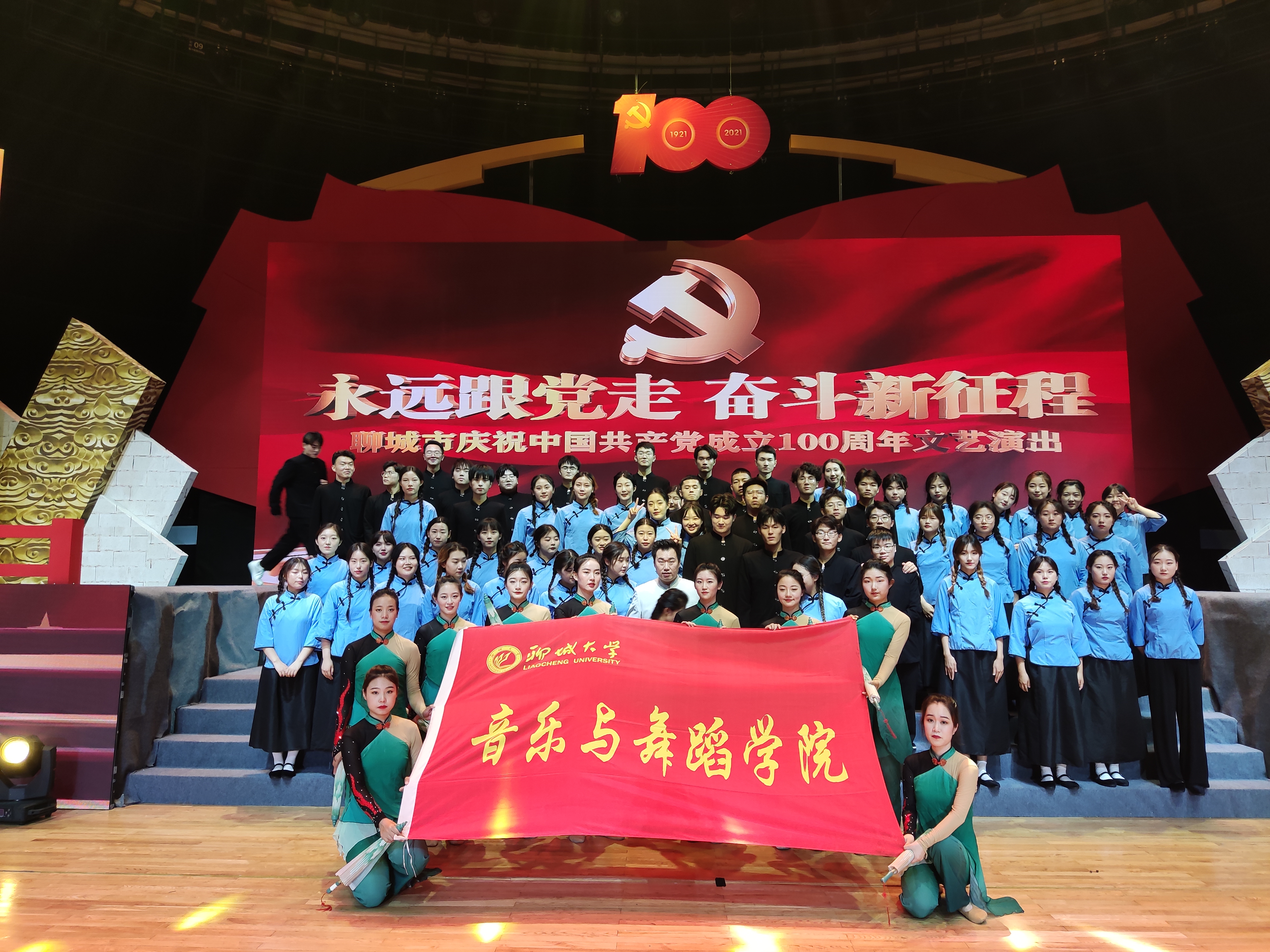 6月26日晚, 情趣 师生登上水城明珠大剧院舞台,参与“永远跟党走·奋斗新征程”聊城市庆祝中国共产党成立100周年文艺演出。学院音乐系主任李斌、舞蹈系主任李雯、教师白雪、徐东阳、魏炜以及80余名学生参与了此次文艺演出。