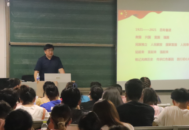 为推动党史学习教育深入开展,引导同学们了解感受党的百年奋斗光辉历程、伟大成就,激励同学们切实坚定理想信念、做优秀党员,6月28日晚7时, 情趣 党总支书记宗传军在9号楼304教室以《中国共产党百年奋斗历程与启示》为题,为入党积极分子和入党申请人讲授了一场生动的党课。
