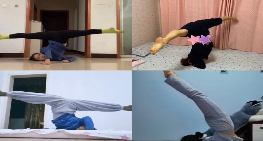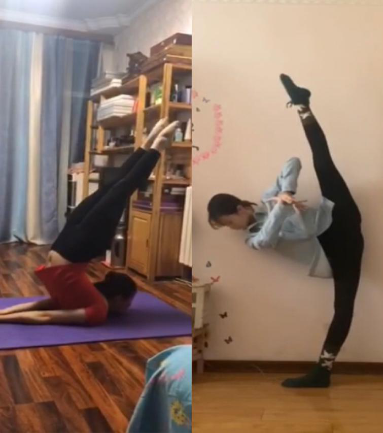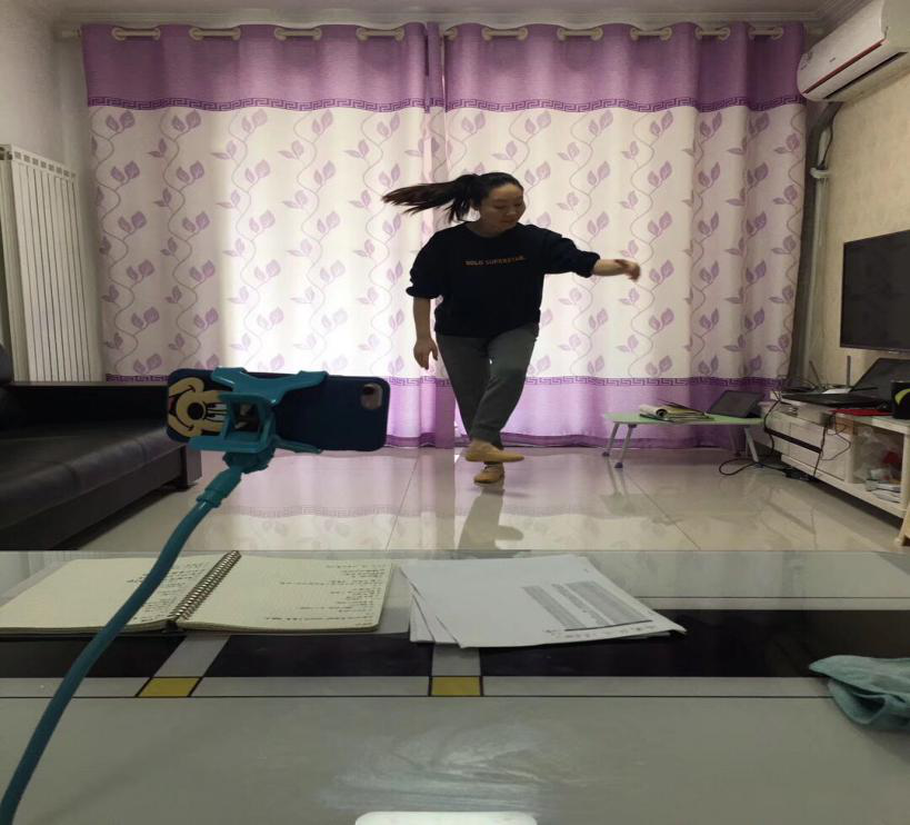 大家不要以为只有老师很崩溃,最近舞蹈生在家录制作业的视频也在抖音上掀起了一波浪潮,我们发现有的同学录制过程中会有家长在一旁“捣乱”、也会有自家的宠物突然的出现;也有的同学会因为几个动作的卡壳而录制十几遍的视频;还有的同学因为没有道具而发动想象,没有把杆就用拖把杆、有的甚至连家中的锅碗瓢盆都用上了。