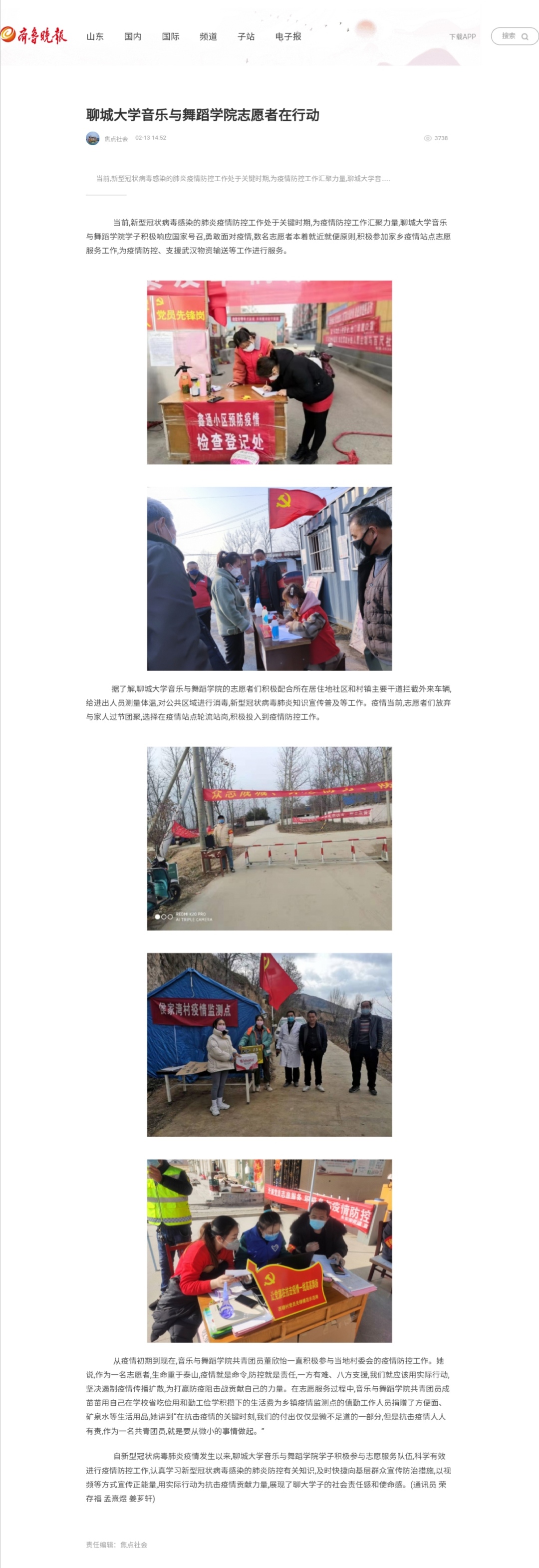 《齐鲁晚报》报道 情趣 学生参加防疫战疫志愿活动