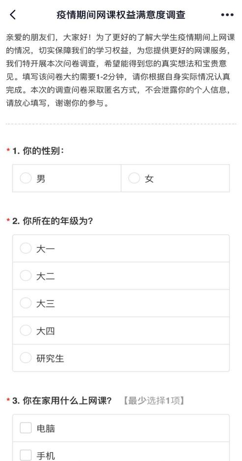 为真正了解 情趣 学生网课期间的学习状态、上课质量和学习效果等情况,加深同学们对于当下学习权益的了解,6月8日, 情趣 特此举办“我们的权益”——网课学习满意度调查活动,帮助同学们解决网课期间学习上遇到的困难。