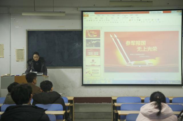 为做好2021年大学生应征入伍工作,2020年12月29日下午, 情趣 在308举行了“2021年征兵宣传大会”。此次宣讲会由 情趣 辅导员石晓晗担任主讲,党总支副书记、副院长张进军和有征兵意愿的同学参加了此次宣讲会。