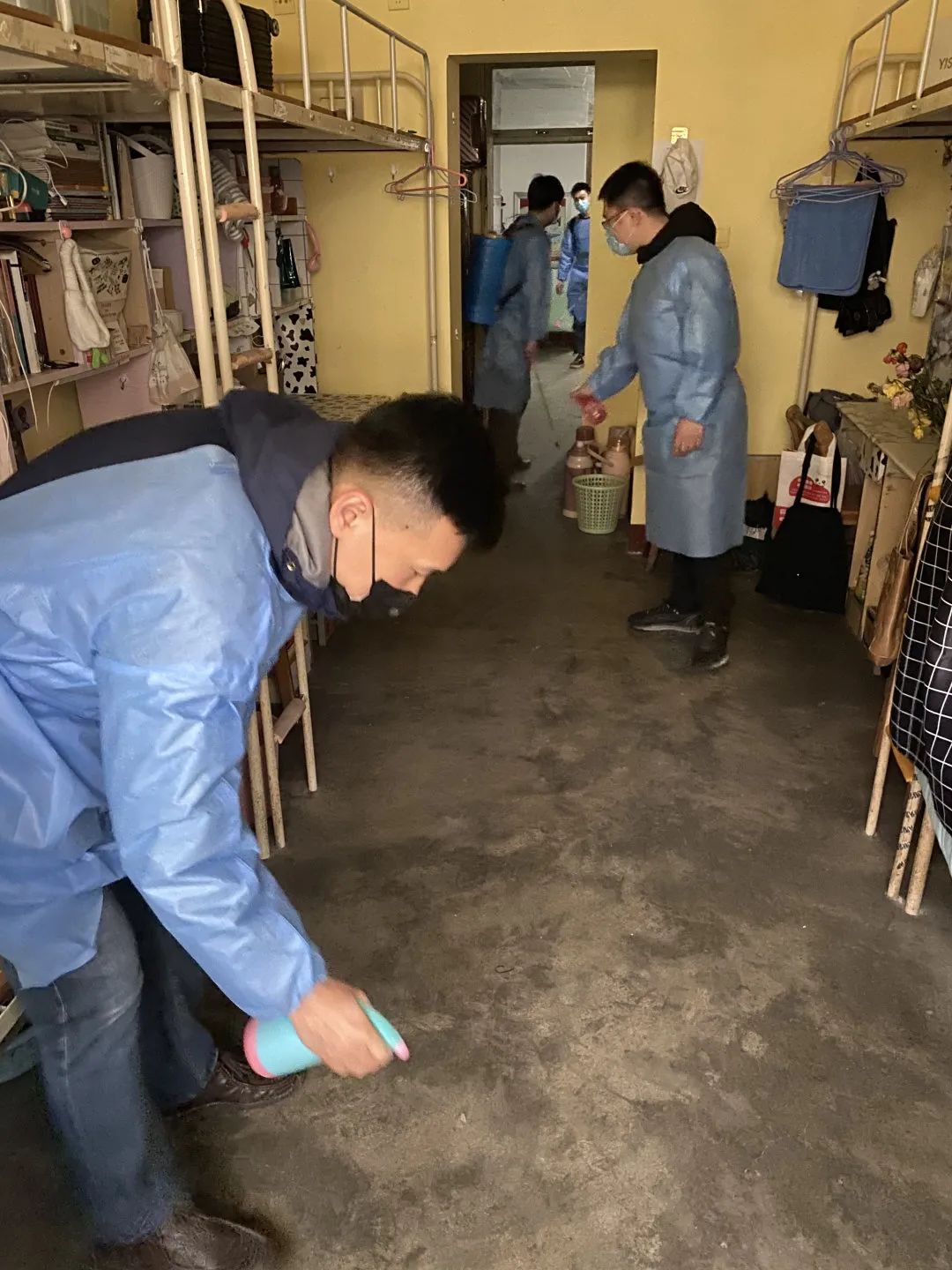 在消毒过程中,老师们认真落实学校关于开展学生宿舍通风消杀工作的要求,配好消毒液,分工合作,对学生宿舍卫生间、阳台、地面及走廊、门把手等区域进行了全面喷洒消毒,做到不留死角、不留盲区,有效地遏制学生宿舍内外霉菌和病菌的滋生繁殖,实实在在为学生的安全保驾护航。