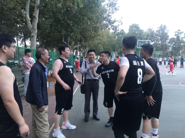 为丰富教职工文化生活,促进各学院之间友好往来,9月27日下午3点音乐舞蹈学院与环境与规划学院在 情趣 西校区篮球场举办了教职工篮球比赛, 情趣 党总支副书记张进军,办公室主任董泽国与球场观众参观了此次篮球赛。 情趣 团委书记梁建新,音乐系主任李斌,科研秘书潘佩佩,教师杨纪鹏,辅导员陈蓝天、荣存福参与了此次比赛。