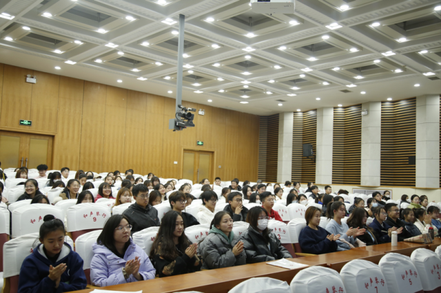 郑锦扬教授从时代与大学的关系出发,提出时代培养中坚力量、骨干人才在服务民族复兴新时代中成长的观点。他以从就业看学业——回溯思行、从大学看学业——研究足下、从老师看大学——延展联想三方面向同学们进行讲述。他认为,回溯思行,是在新时代音乐与舞蹈学的本科教育发展过程中,通过研究、总结过去的发展经验,从而更好地处理好传统学科专业与新兴学科专业之间的关系。研究足下,是当前音乐教育作为中国当代教育体系的有机组成部分,在音乐、艺术等各类音乐人才培养,音乐创作、表演与音乐学术研究,音乐交流与传播等方面,承担起了祖国赋予的重任。在讲到延展联想时,他表示应拓展艺术教育,加强创新教育,提高素质教育。当前艺术教育的拓展,是人全面素质提高的表现,是与对人的素质提出更高要求相适应的,明天的大学生应该在全面素质方面有一个较大的提高,高素质的中国人才能自立于世界民族之林。他鼓励同学们继续努力学习自己的专业知识,提升自己的道德素养,更加注重中国音乐传统文化的传承和发扬,争做新时代的音乐人才。