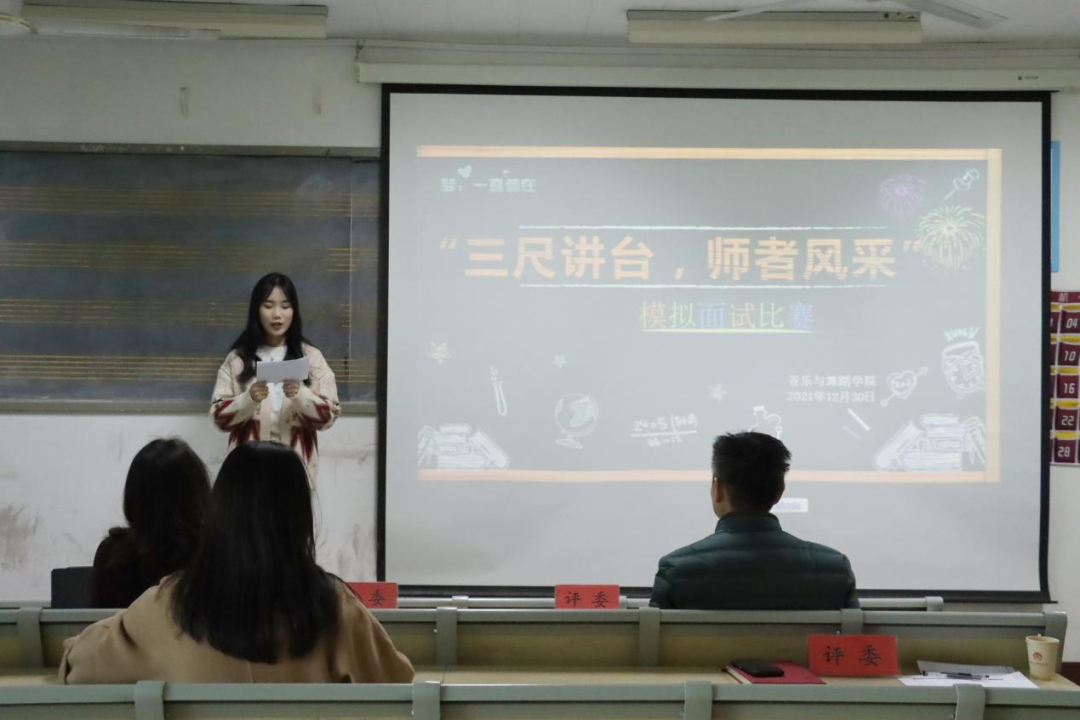 12月30日, 情趣 于 情趣 西校区9#408举办“三尺讲台,师者风采”模拟面试比赛,本次活动由学院党委副书记、副院长张进军,副院长牟艳丽、辅导员石晓晗、张萌担任评委,部分19级学生参与了此次大赛。