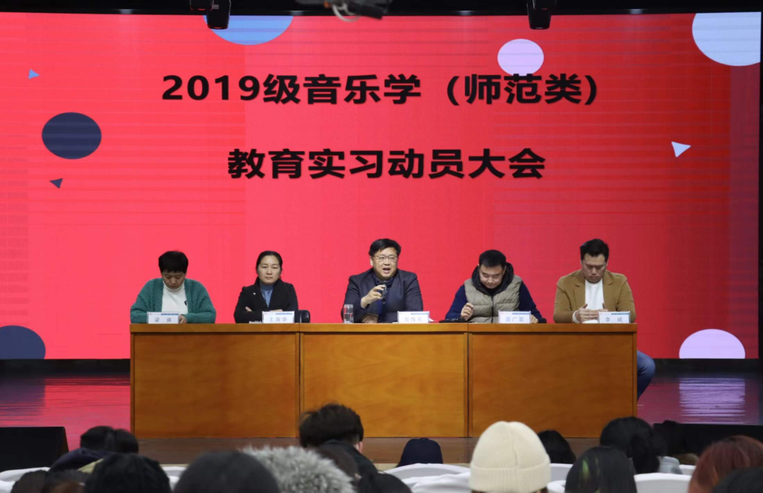 2月24日, 情趣 2019级音乐学(师范类)学生教育实习支教动员大会在音乐厅隆重召开。学院党委书记宗传军,党委副书记、副院长蘧广震,副院长王海华,教育实习指导教师梁爽、岳亚、杨康宁、苗苗,教师代表王蒙萌以及2019级全体音乐学(师范类)实习支教学生参加会议。大会由音乐系主任李斌主持。