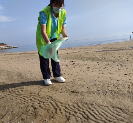 2021级2班志愿者顾笑涵通过捡拾垃圾,号召群众自觉守护黄河的生态环境,从己出发为黄河生态保障贡献力量,让更多人树立正确环保理念,积极投身共建绿水青山的事业中。