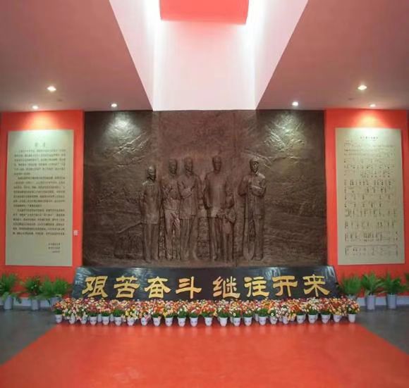 走入纪念馆大门,映入眼帘的是周恩来总理的雕像,经介绍同学们了解到,周恩来总理曾于二十世纪六十年代先后两次到该村参观视察,把沙石峪人们改天换地的精神称为“当代愚公”,并先后有120多个国家的党和领导人到此参观访问,至此愚公精神享誉国内外。进入大厅,主墙上是张贵顺书记和几位当代愚公精神的代表人物浮雕,他们为沙石峪的建设做出了重大的贡献,浮雕底座是“艰苦奋斗,继往开来”八个大字,点明了纪念馆的主题。馆内还陈列着当时的各种农具,墙上的图片展示着张贵顺书记带领大家兴建水利,开山造田,开凿愚公洞的场景。