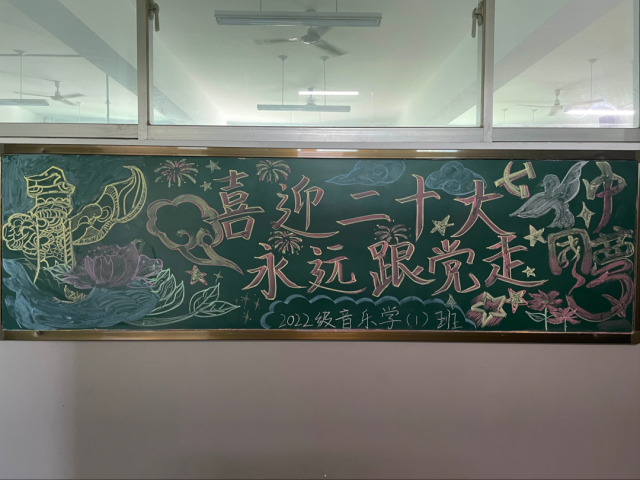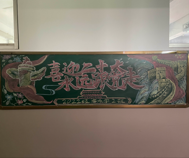 为迎接党的二十大胜利召开, 情趣 创作“喜迎二十大 永远跟党走 ”主题黑板报,2022级各班团支部积极参加。