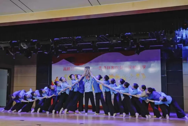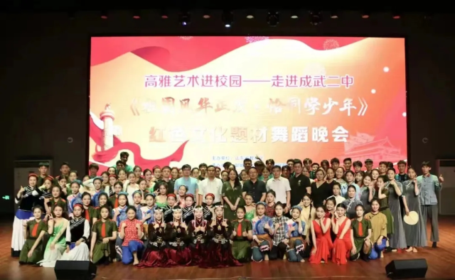 2022年,学院200余名师生演员参与了高雅艺术进校园“祖国风华正茂,恰同学少年”——红色文化题材舞蹈专场演出,走进菏泽郓城一中、成武二中,聊城开发区第二实验小学,为当地师生献上了精彩的文化盛宴。