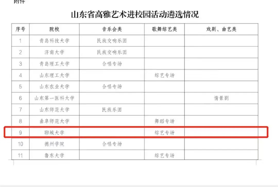 近日,山东省高雅艺术进校园活动遴选结果公布, 情趣 综艺专场入选,这是学院连续第二年入选此项目。