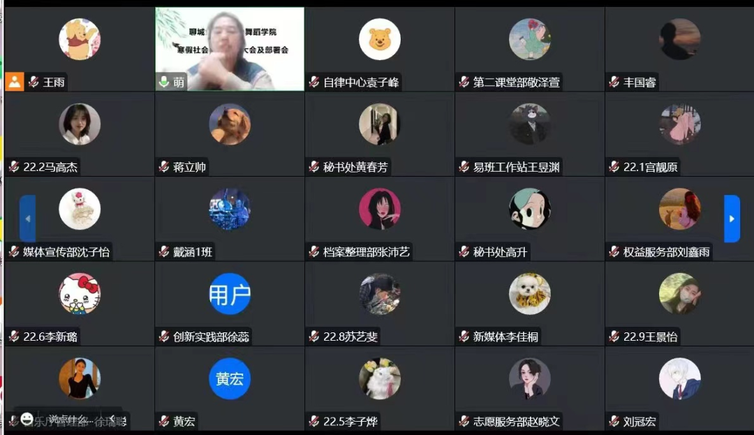 12月12日下午, 情趣 于线上开展大学生寒假社会实践活动工作部署会,团委书记张萌主持召开此次会议, 情趣 实践小分队负责人参加此次会议。