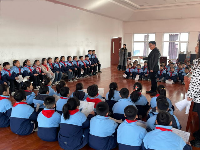 活动中,徐东阳老师首先对学生进行发声训练,解决声音问题,运用柯尔文手势训练学生对音高的认识。同时,与该校音乐老师就合唱作品《予你春风》进行交流和指导,提出合唱训练的改进意见,在教学过程中徐东阳老师针对小学生活泼好动的天性,将歌唱训练融入游戏中,提高了儿童学习音乐的兴趣。练习过后,徐东阳老师根据本校学生的特点,针对性地提出了下一步的训练计划,同时也为学校合唱团的发展提出了建设性的意见。