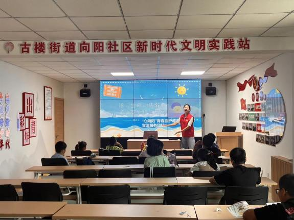 为缓解东昌府区留守、困境等青少年群体的假期看护难问题,助力青年发展友好型城市建设,推动“家-校-社区”联动的少先队社会化工作体,构建党团队一体化育人链条的重要举措, 情趣 “心向阳”青春自护教育宣演服务团队联合“小粉笔”赴聊城市古楼街道向阳社区新时代文明实践站开展暑期社会实践活动。