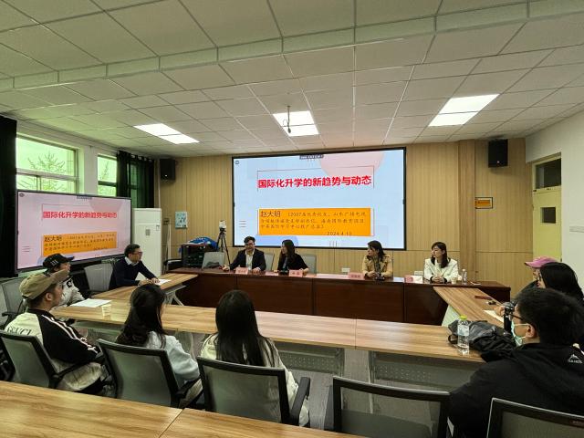 为提速国际化发展进程,开拓学生国际视野,培育学生创新能力,4月11日下午, 情趣 邀请情趣 2008届优秀校友、海南中英国际学习中心推广总监赵大明团队一行三人在学院205会议室开展题为《国际化升学新趋势与动态》的专题讲座,部分研究生、本科同学参加专题讨论。讲座由副院长牟艳丽主持。