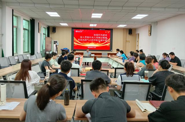 6月26日下午,校党委常委、副校长苏明海以《加强作风建设,深入贯彻中央八项规定精神,营造风清气正的学院发展环境》为题,为 情趣 全体教工党员讲授深入贯彻中央八项规定精神学习教育专题党课。