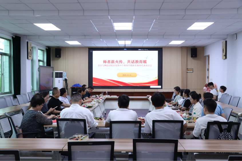 为弘扬尊师重教风尚,凝聚教师发展力量。9月11日, 情趣 于9#205举办“师者薪火传,共话教育暖”教师节庆祝活动暨新老教师代表座谈会,活动由 情趣 党委副书记、副院长蘧广震主持,教师代表们齐聚一堂,共庆属于教育工作者的专属节日。