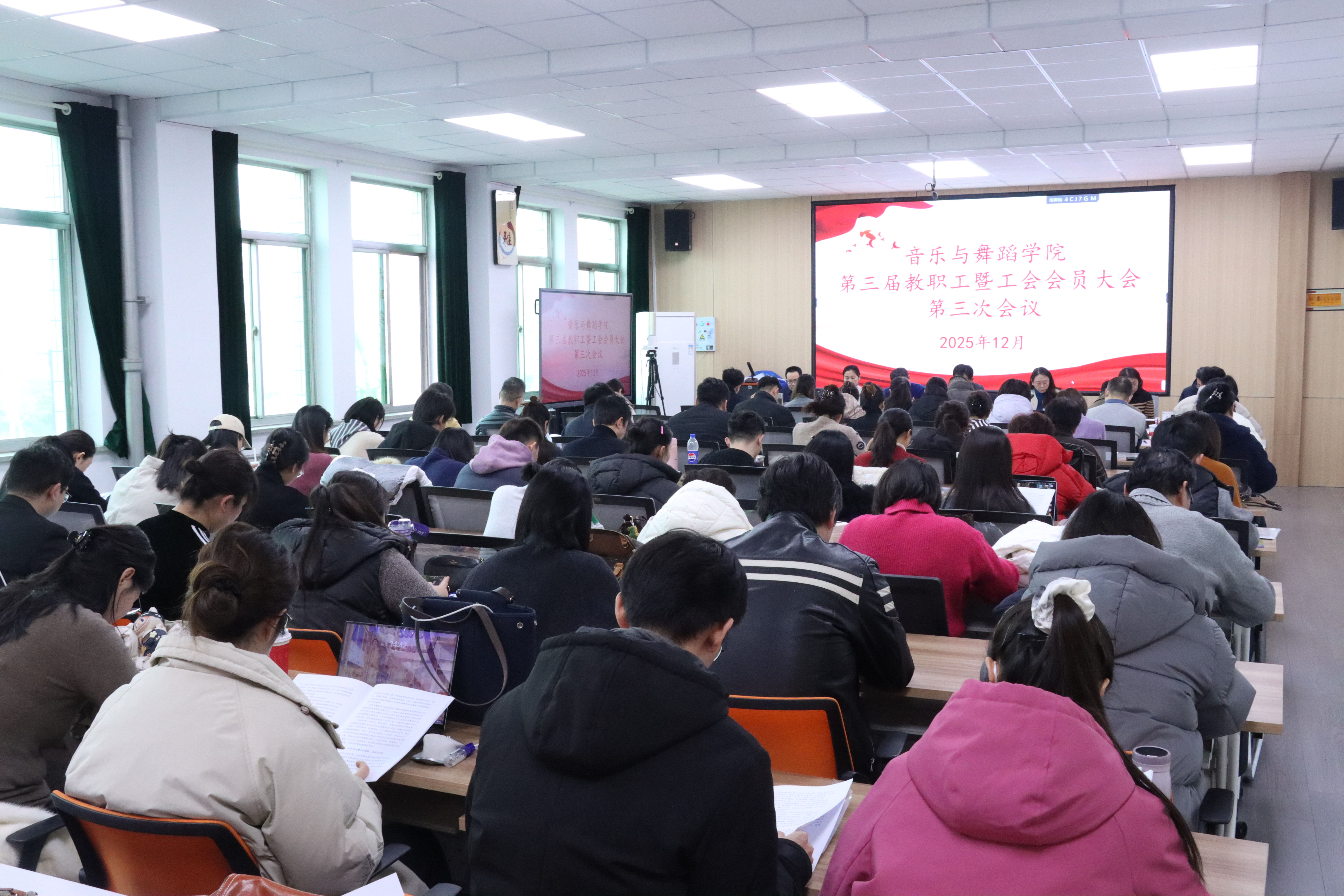 弦歌逐梦砺初心,聚力同行赴新途。12月18日, 情趣 第三届教职工暨工会会员大会第三次会议于9-205会议室隆重召开。学院全体教职工怀揣使命、齐聚一堂,共话过往成就,共绘发展蓝图,以昂扬姿态为学院内涵建设与高质量发展注入奋进力量。