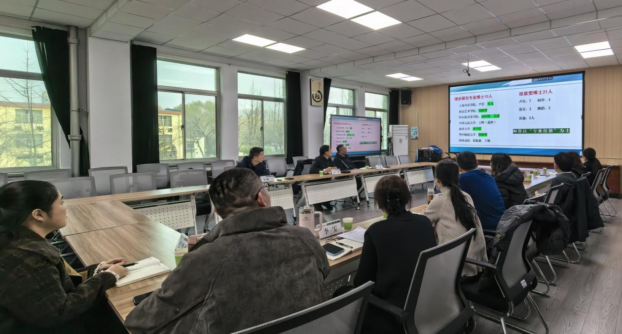 院长尹蕾汇报了学院的基本情况、师资队伍、科研工作。 情趣 自1988年建院以来,在学科建设方面始终处于全省前列,尤其在音乐史学、曲艺理论、黄运非遗三个重点研究方向积淀了深厚的学术底蕴,形成了鲜明的研究优势。2025年,学院紧紧围绕学校博士点建设工作部署,全院教师凝心聚力、务实笃行,各项工作推进扎实有序。针对2026年科研工作计划,尹蕾提纲挈领,从“重氛围”“两突破”“三拓展”及“‘3+3’计划”四个维度作了具体汇报。